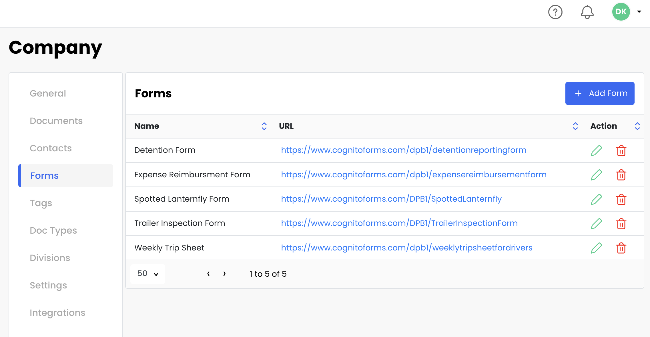 Go to Company → Forms.