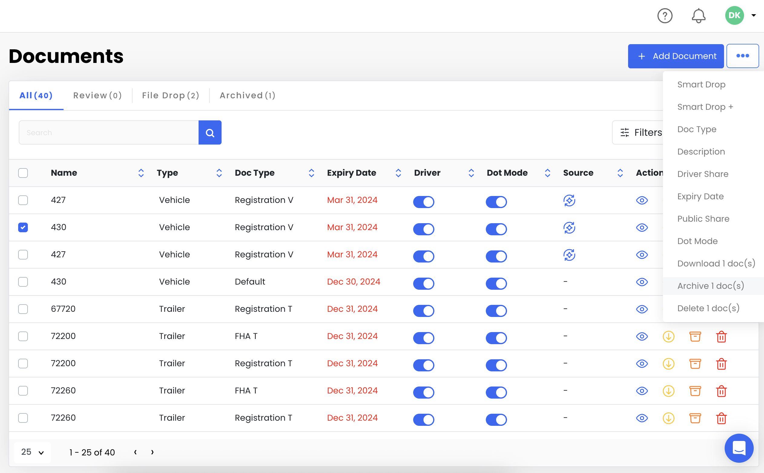 Enable Auto Archive on Expiry for any Doc Type as needed.