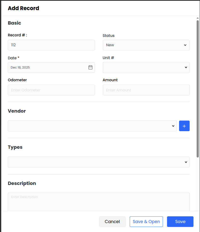Enter the Type name (e.g., “Oil Change”, “Inspection”, etc.) and save.